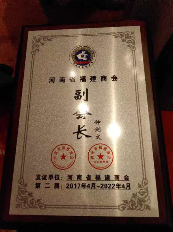 - 热烈祝贺我集团副董事长钟剑文先生荣获河南福建商会“副会长”